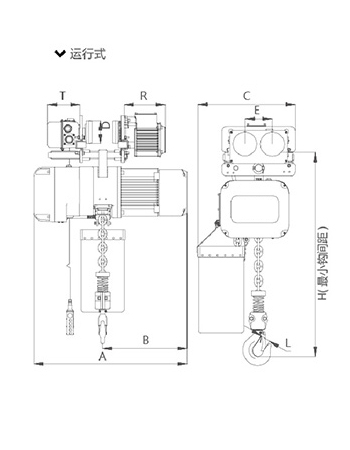 | 運(yùn)行式環(huán)鏈電動(dòng)葫蘆(7.5T-50T)尺寸參數(shù): | ||||||||