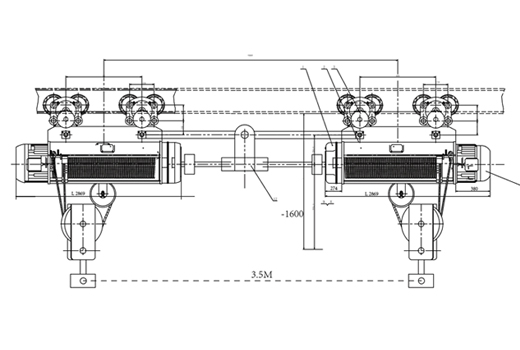 該設(shè)備通過機(jī)械與電氣同步,強(qiáng)制起升電機(jī)轉(zhuǎn)速同步,兩臺電動葫蘆采用一套電氣控制系統(tǒng), 克服了電氣動作誤差,從而保證兩臺電動葫蘆同時升降起吊重物。設(shè)備組合方便,還可增加超載限制、高度顯示及遙控等輔助功能。
